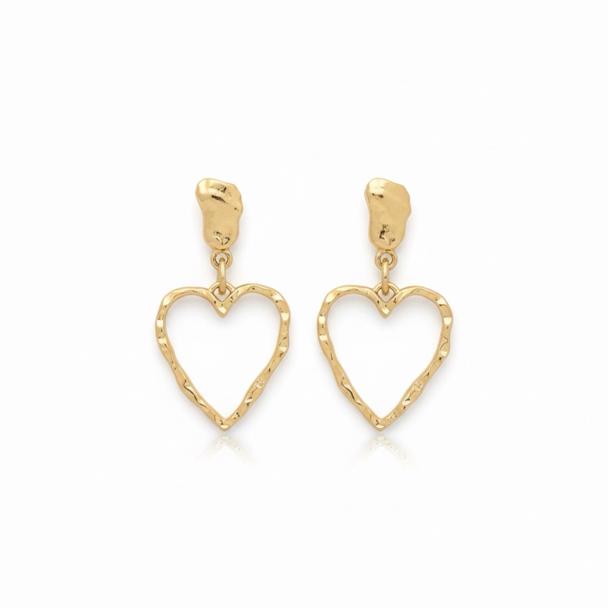 Auri - El / Golden Lion Of Gold; The One Who Loves Adventure & Travel. 18k Gold Plated Stainless Steel Engraved Heart Earrings With Gold Nugget Post. Lightweight. Safe For Sensitive Ears. Created For The Beautiful & Free-Spirited.