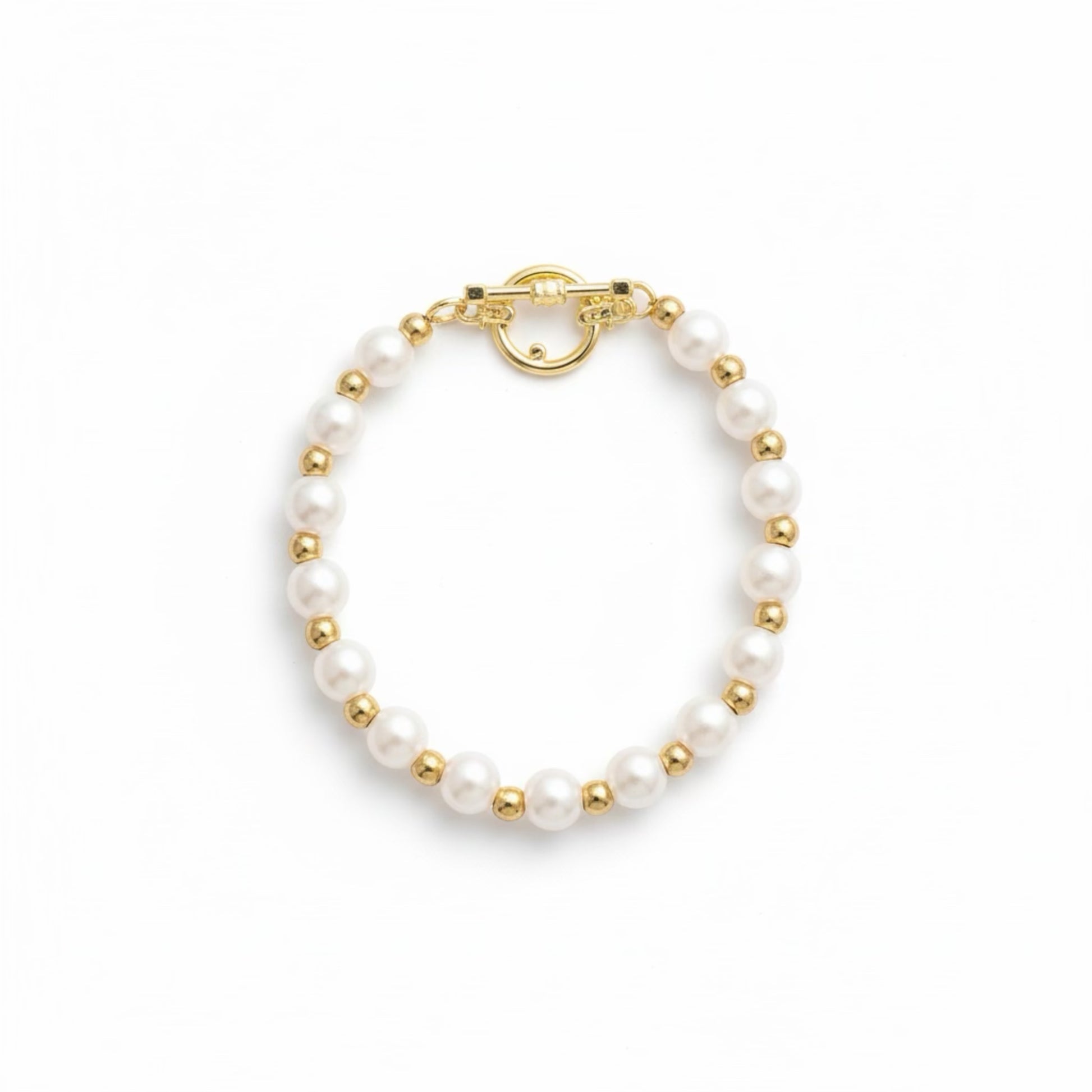 Chan(s) / Good Fortune. 18k Gold Dipped Clasp Satin Pink Pearl & Matte Gold Bracelet.
