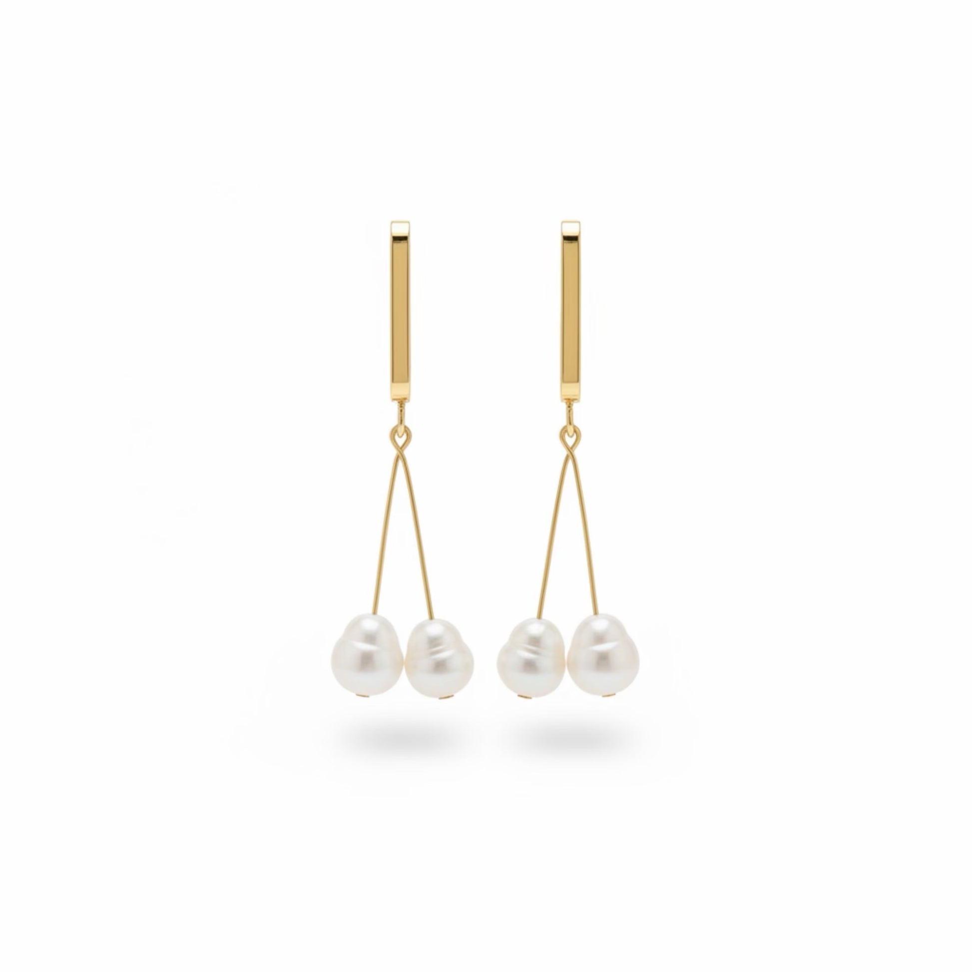 Sher - re/ Darling; Sweetheart. 18k Gold Dipped Paper Clip Post Fresh Water Pearl Cherry Drop Earrings. Pearls Symbolize Wealth, Purity, & Wisdom; Wear Pearls To Attract Fortune And New Opportunities.