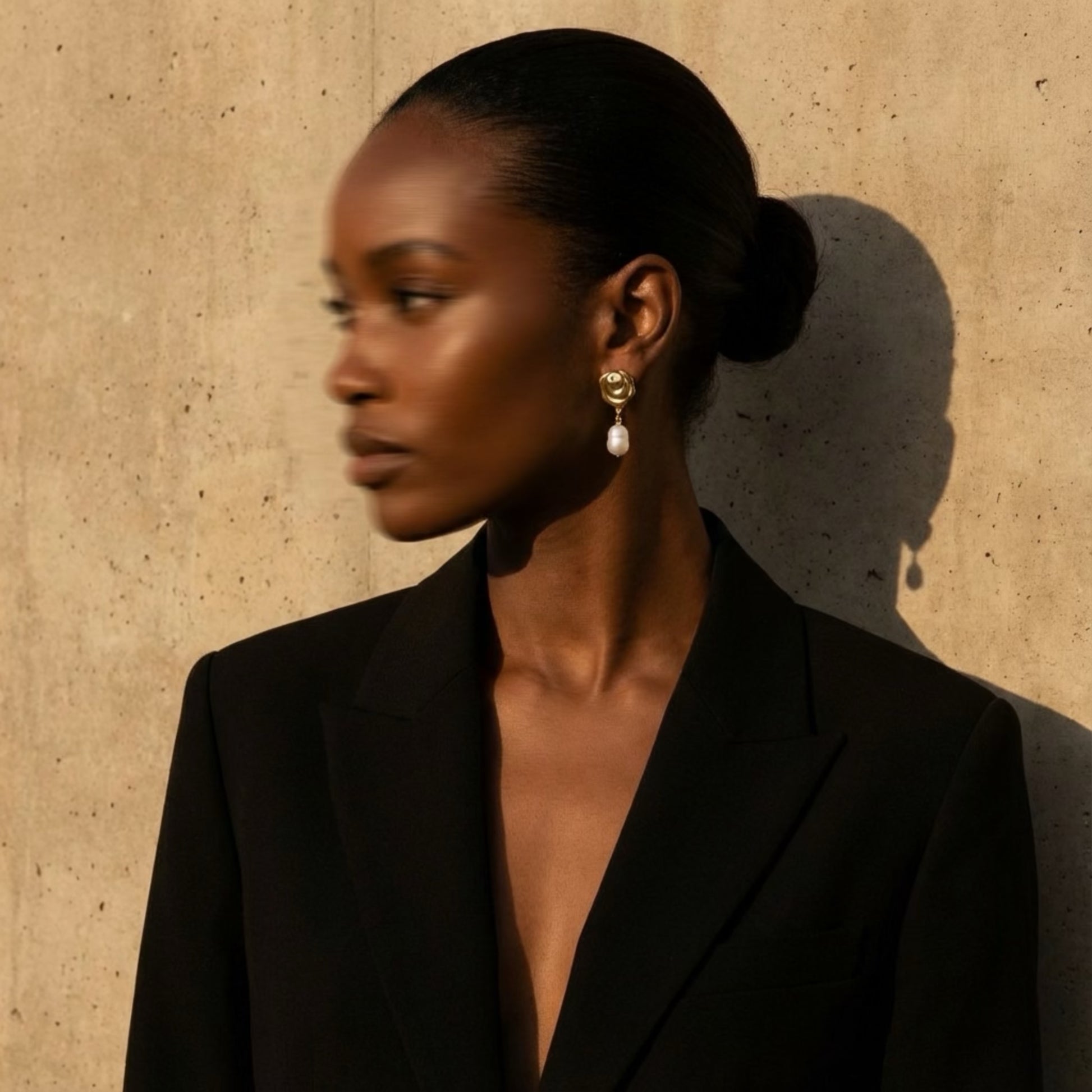 Es - tel / Star; brightness, guidance and beauty. 18k gold plated textured post with fresh water pearl drop earrings. Estella symbolizes celestial brightness, hope, guidance, and distinction.