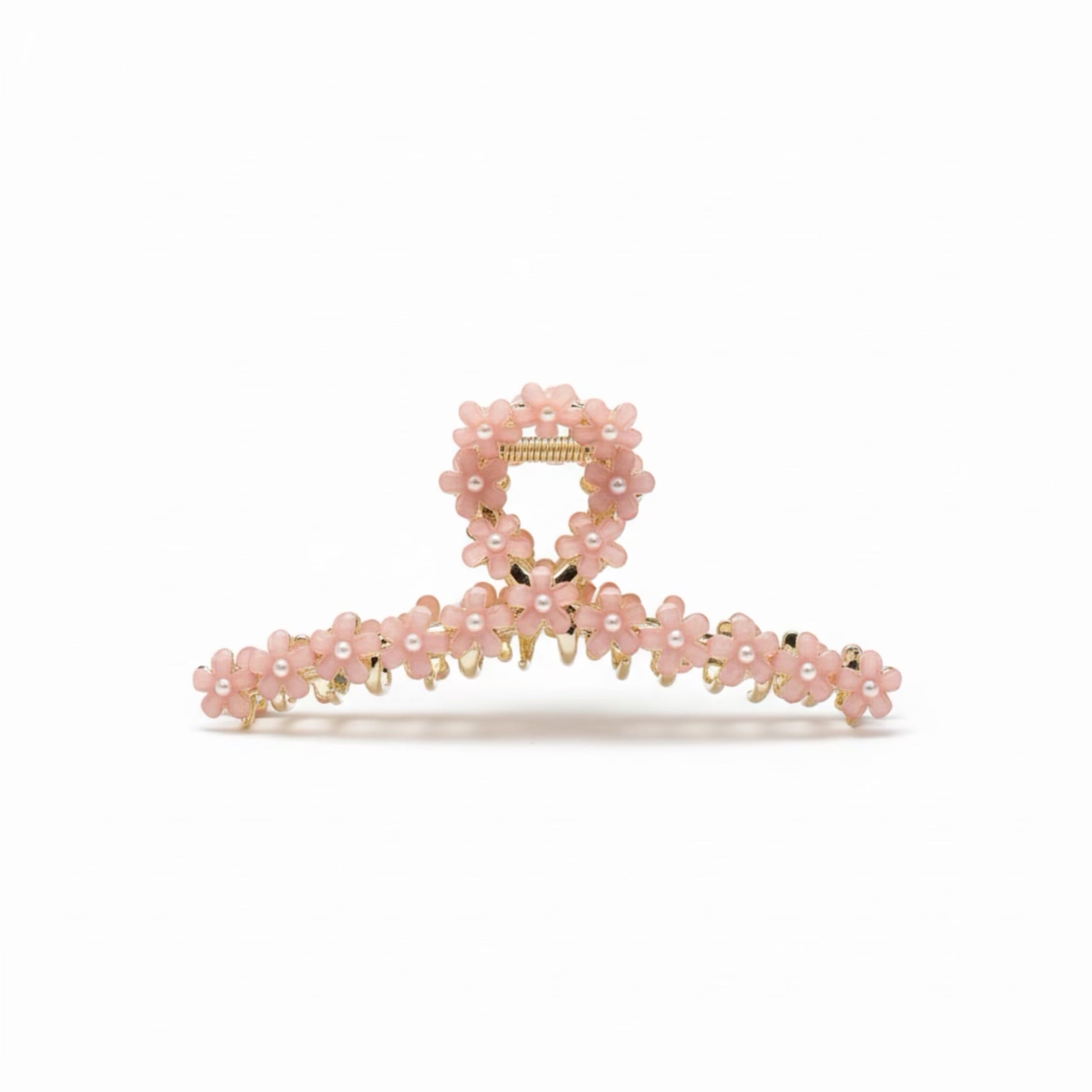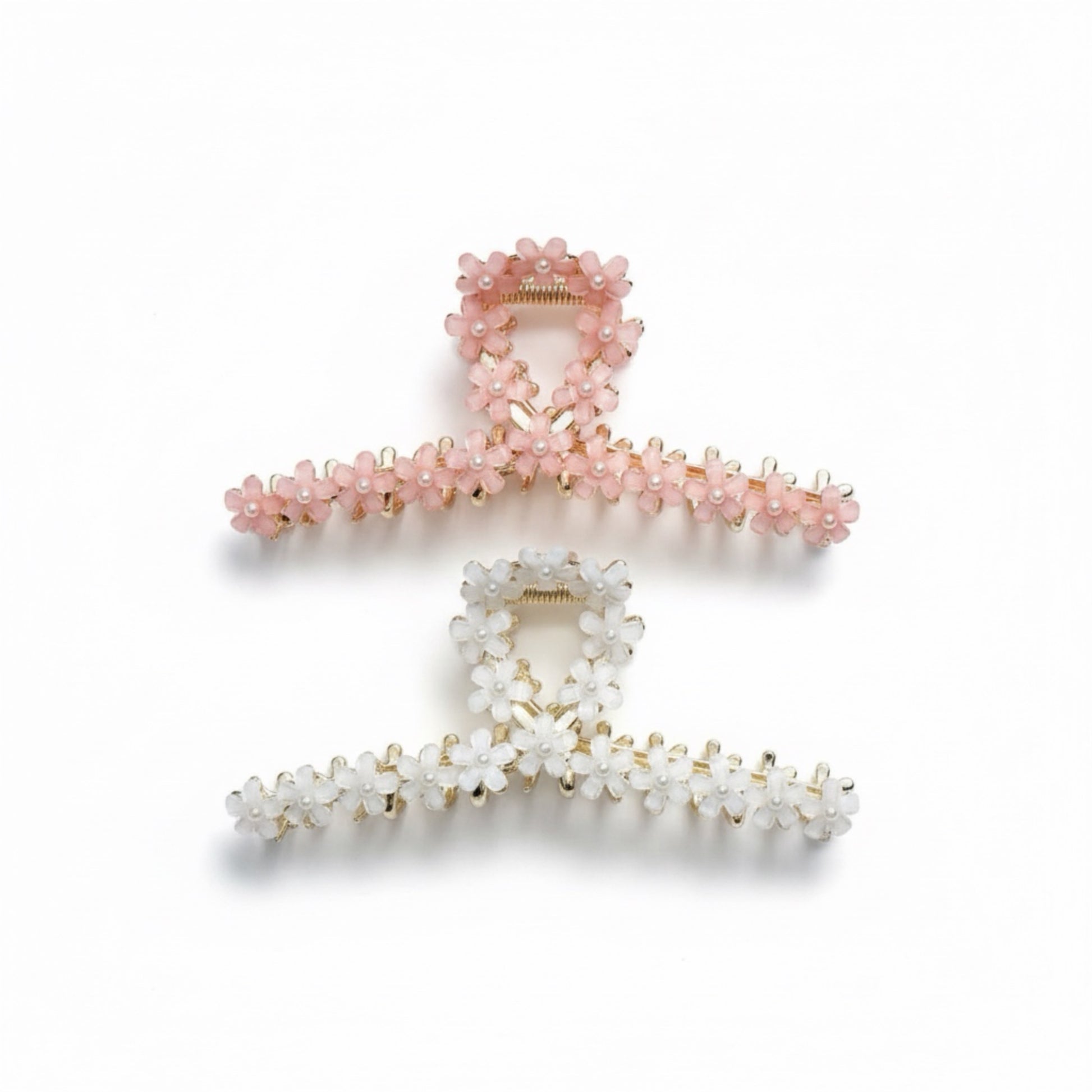 Sparkling Acrylic Flowers With 2mm Pearl Large Gold Hair Claw.