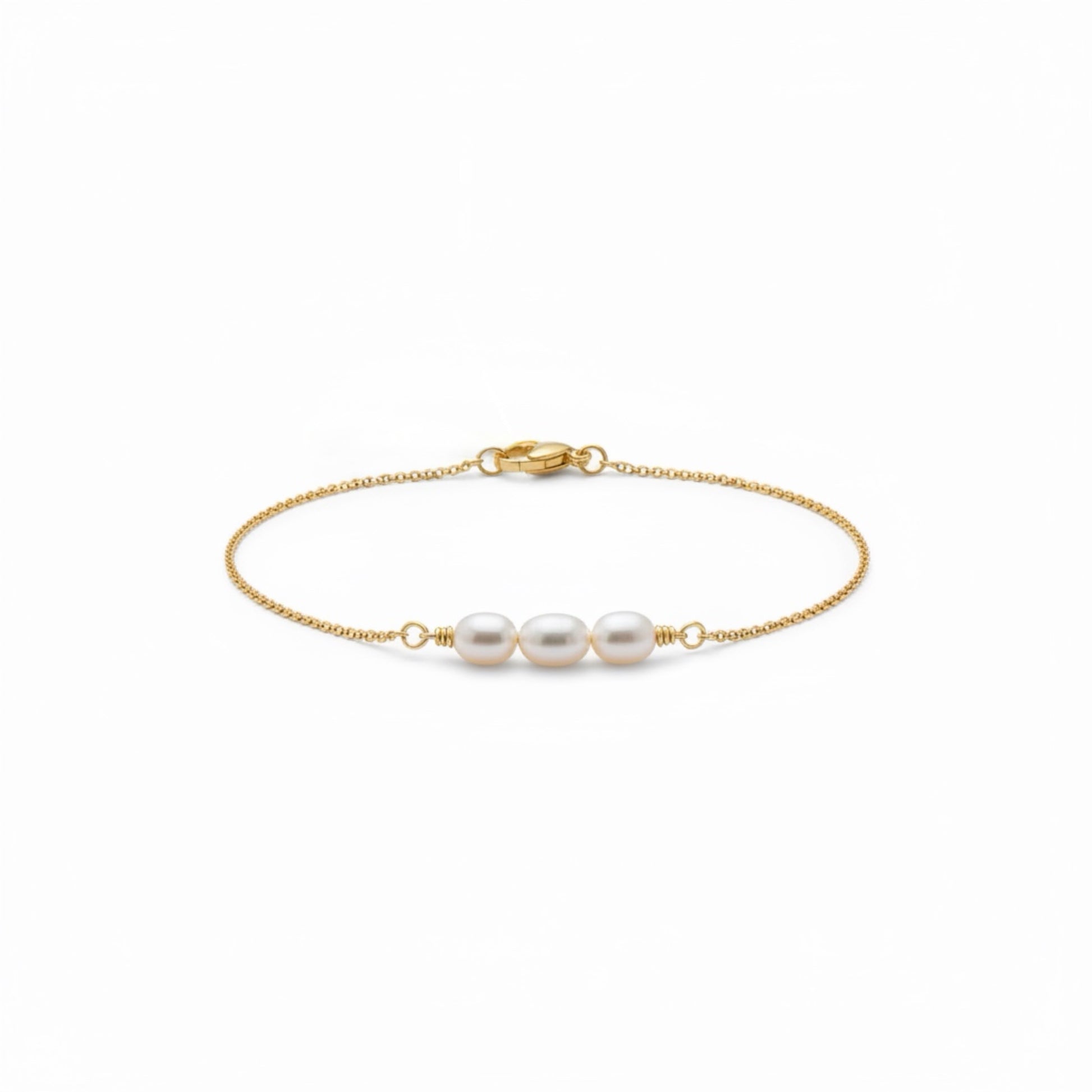 Lee - loo/ God is abundance; Famous in war. 18k gold dipped dainty chain with triple rice water pearl pendant. LILOU, the must-have accessory for the chic and stylish. With its sleek design and versatile style, LILOU effortlessly elevates any look. Add a touch of sophistication and elegance to your wardrobe with LILOU.