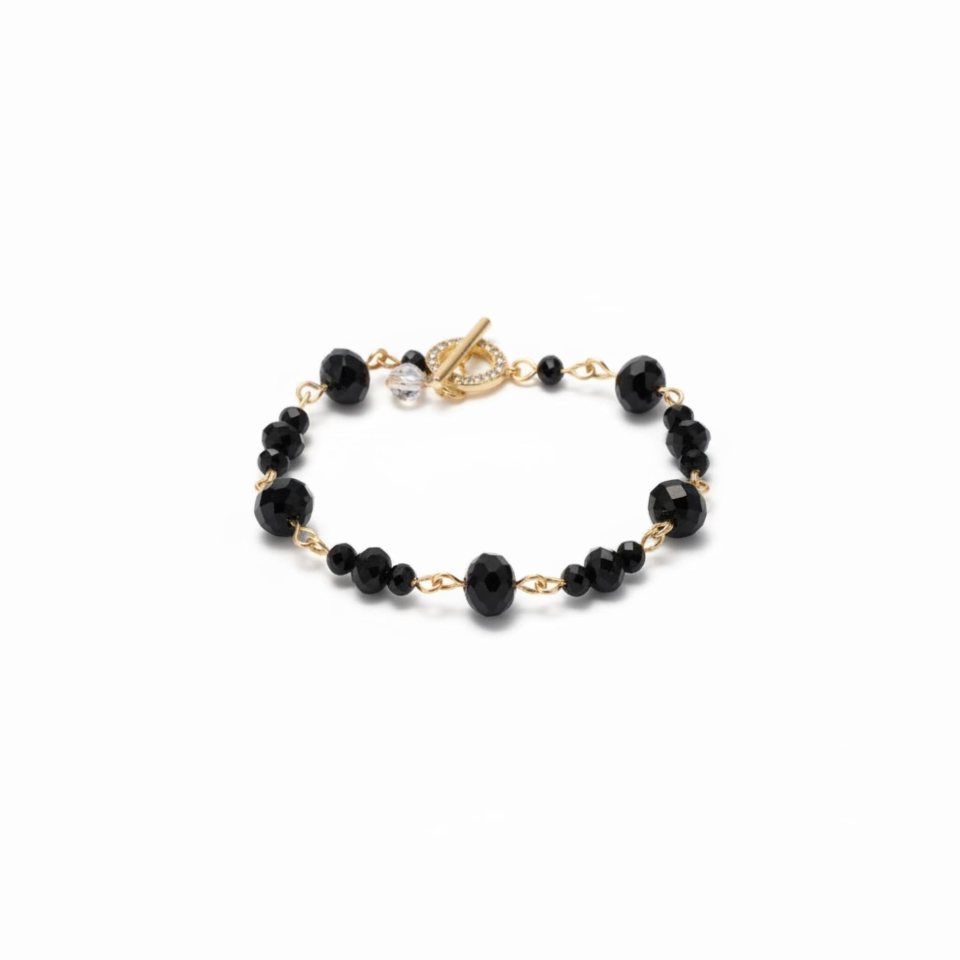 Nih - col - et / Victory Of The People. 18k Gold Dipped Cubic Zirconia Clasp Rondell Crystal Bracelet With Charm.