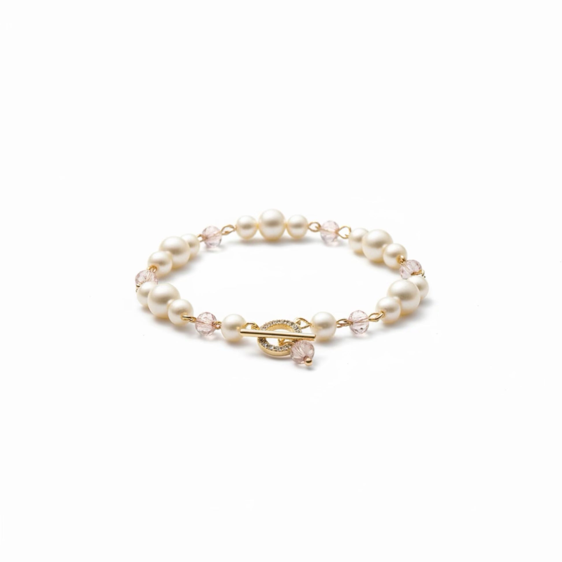 Stah - See/ Beautiful, Brave Woman Of God. 18k Gold Cubic Zirconia Champagne Satin Pearl Bracelet With Bead Charm. Pearls Symbolize Wealth, Purity, & Wisdom; Wear Pearls To Attract Fortune And New Opportunities.