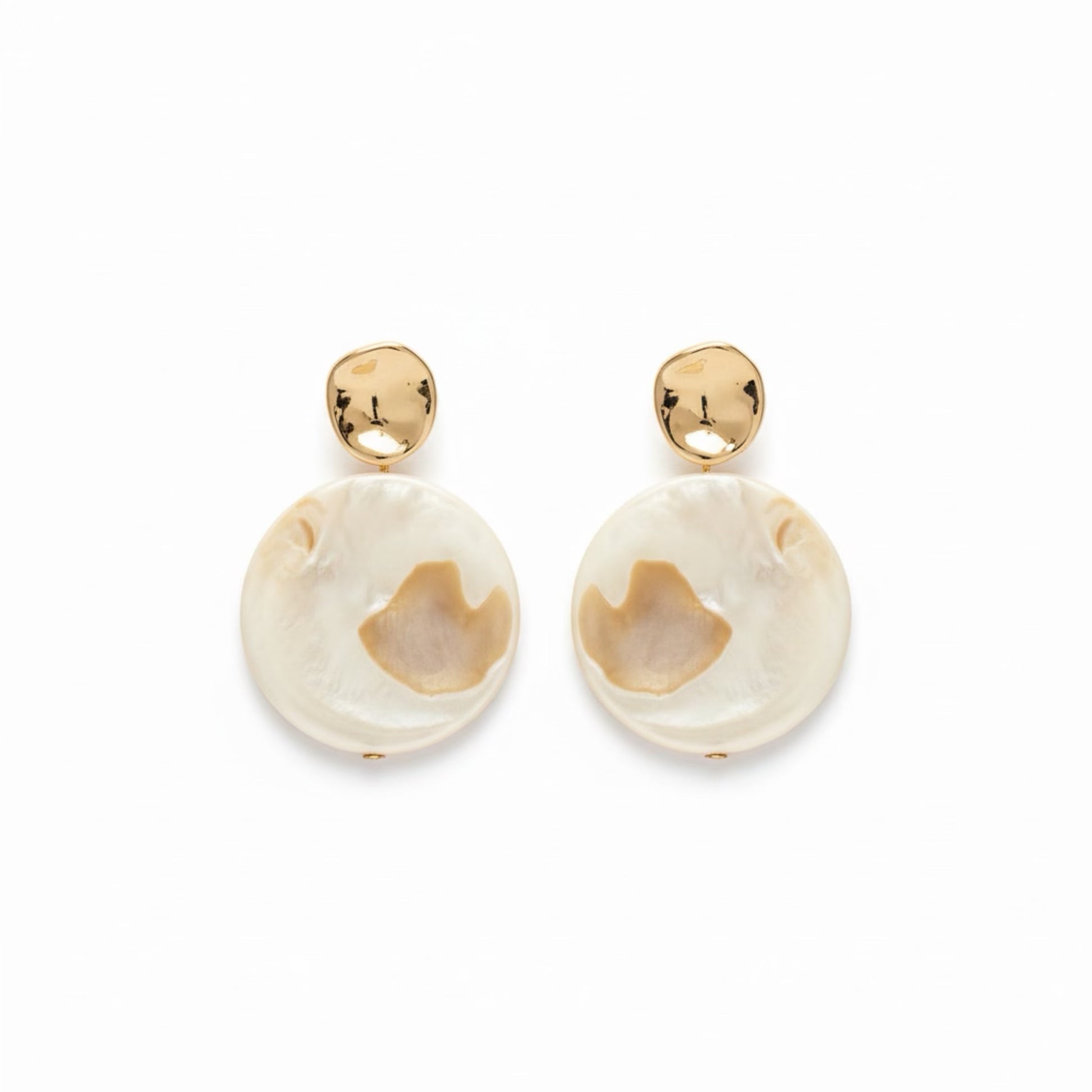 Vee - Nuss / Goddess Of Love & Beauty. 18k Gold Textured Post With Mother Of Pearl Drop Earrings. Created For The Beautiful & Elegant. Mother Of Pearl Attracts Prosperity, Heightens Intuition, & Offers Protection From Negative Energy And Love.